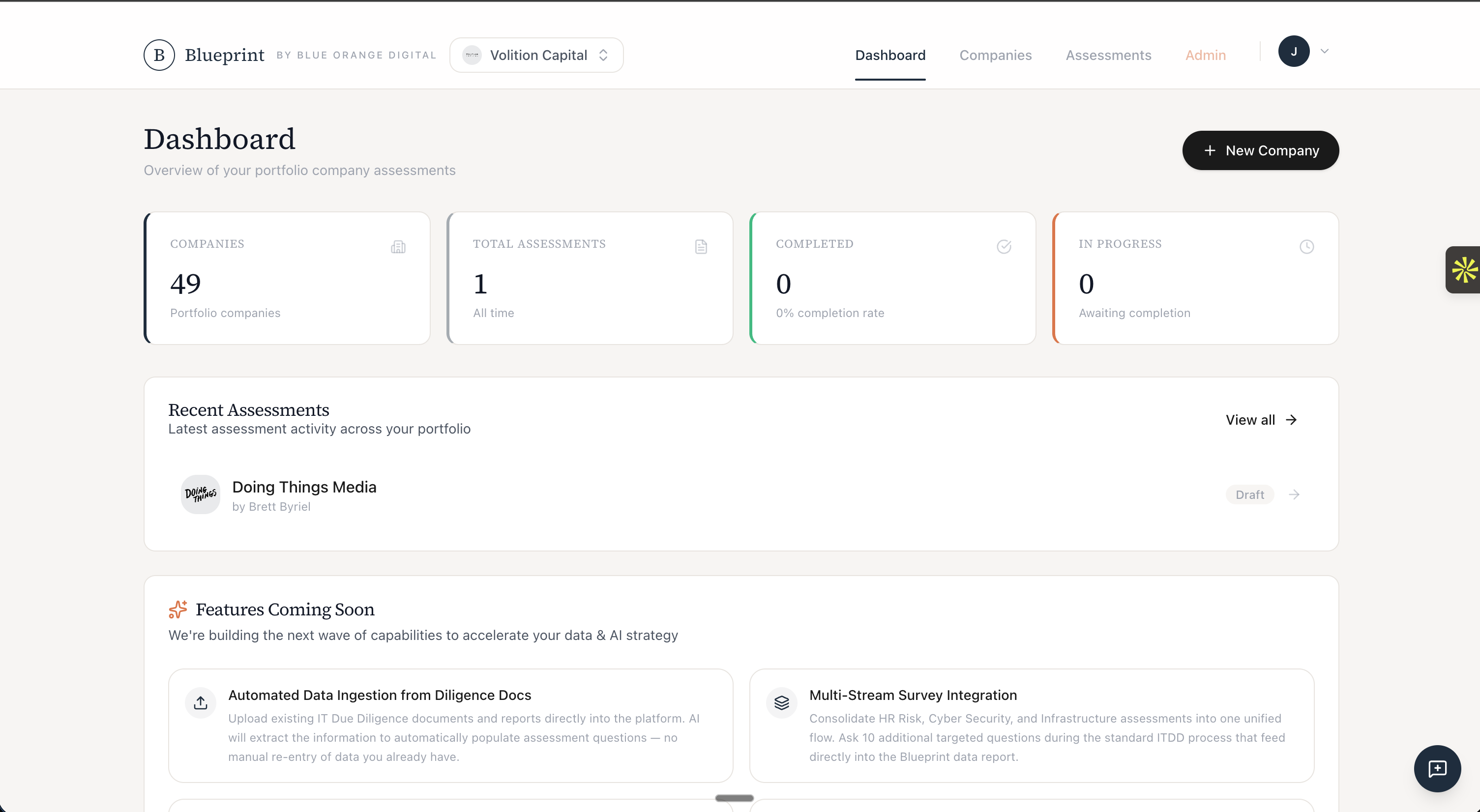 We built Blueprint because every portfolio company has unrealized value locked in its data infrastructure—and the firms guiding those companies deserve a faster, clearer way to quantify where data engineering and AI can drive measurable returns.